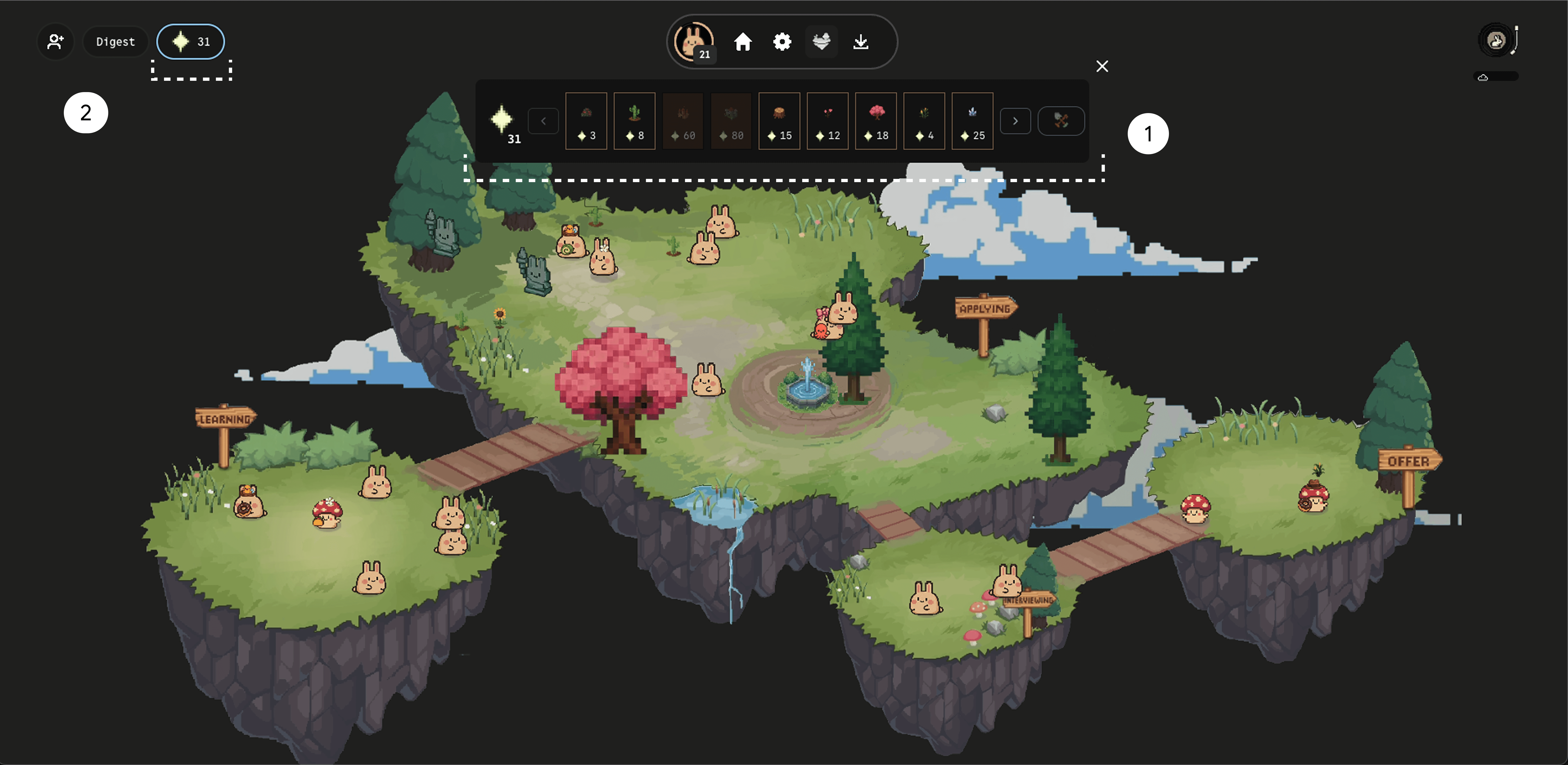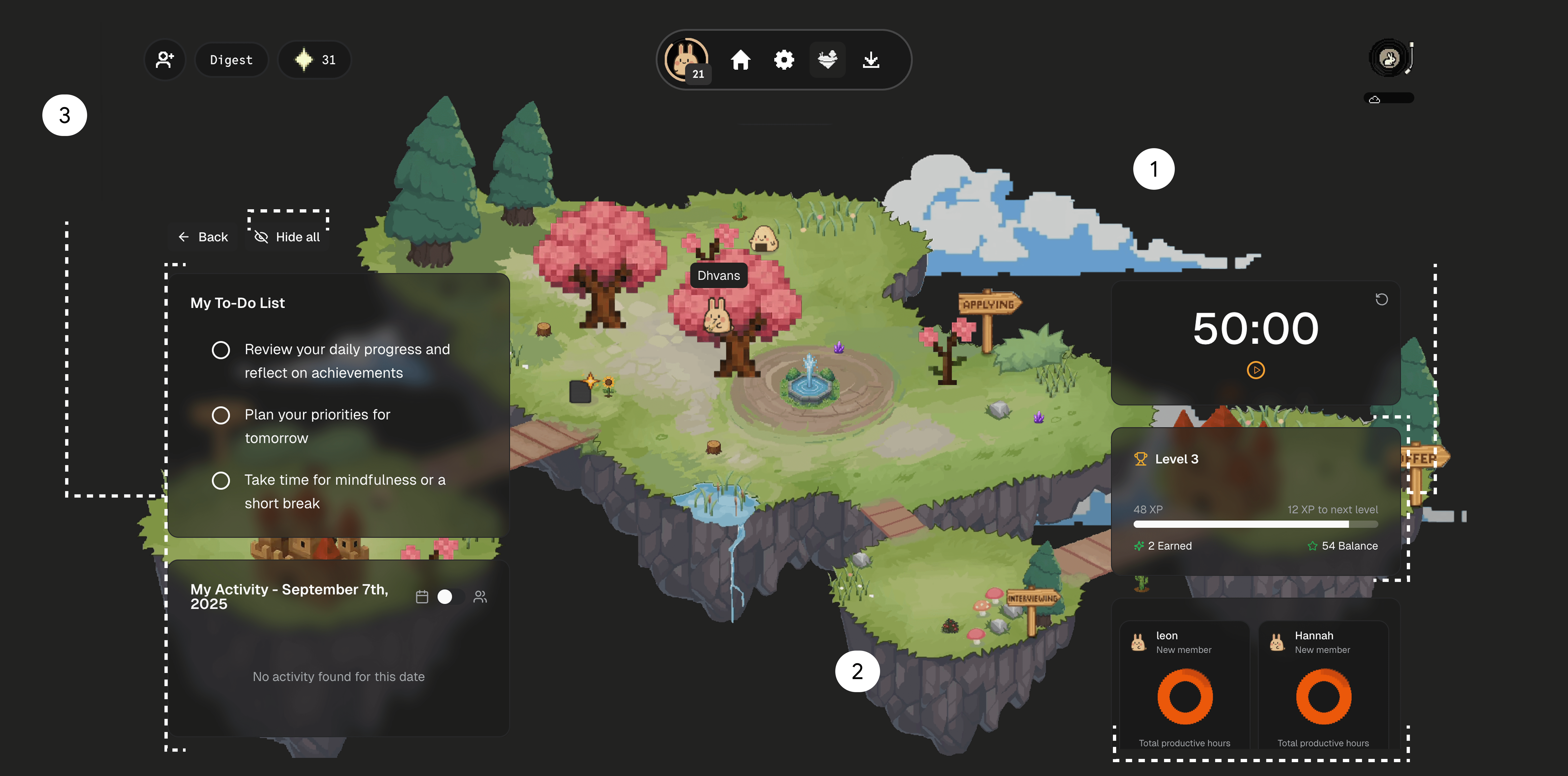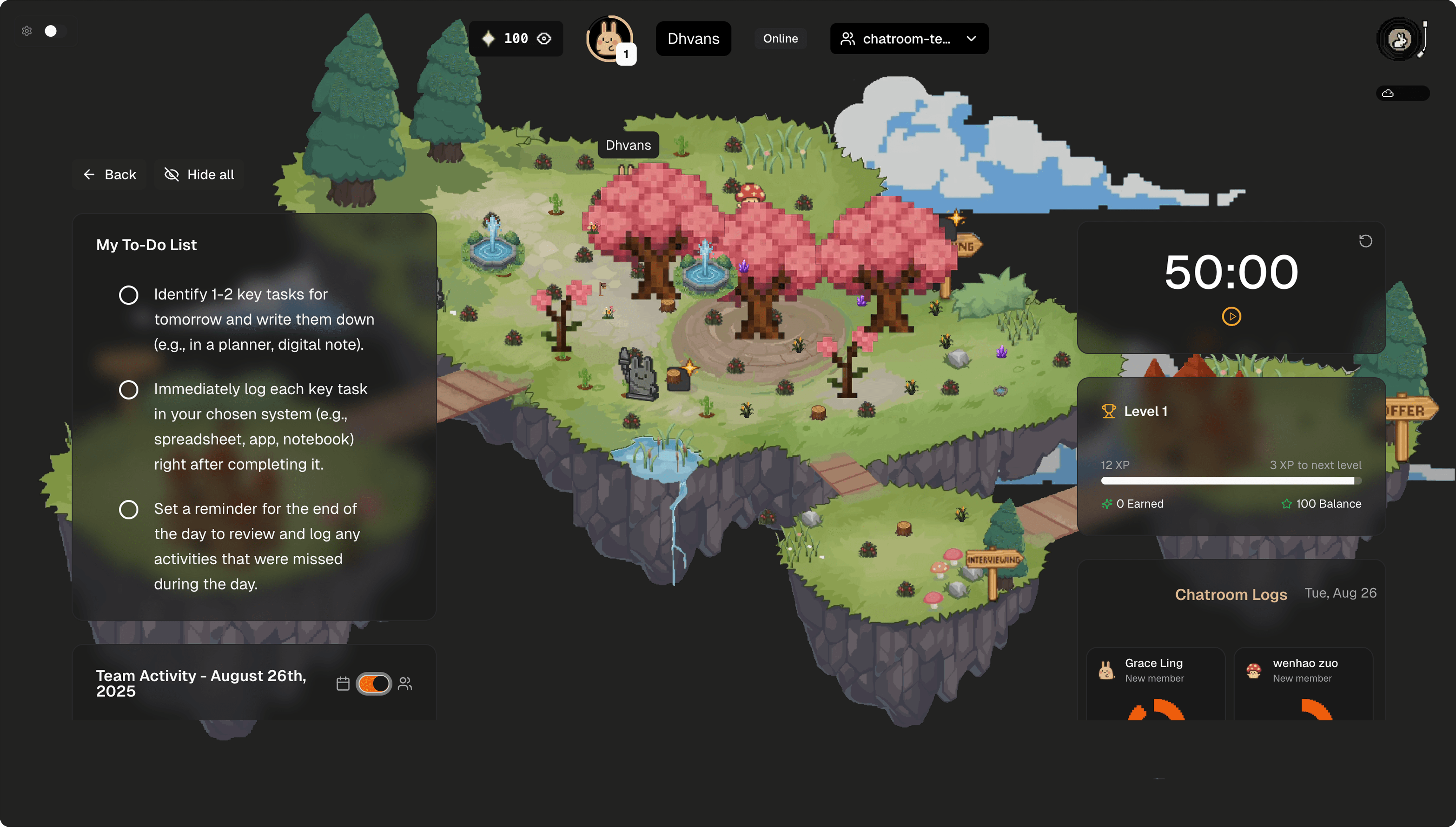 Users could create private worlds to work solo while still earning XP and decorating their own island.