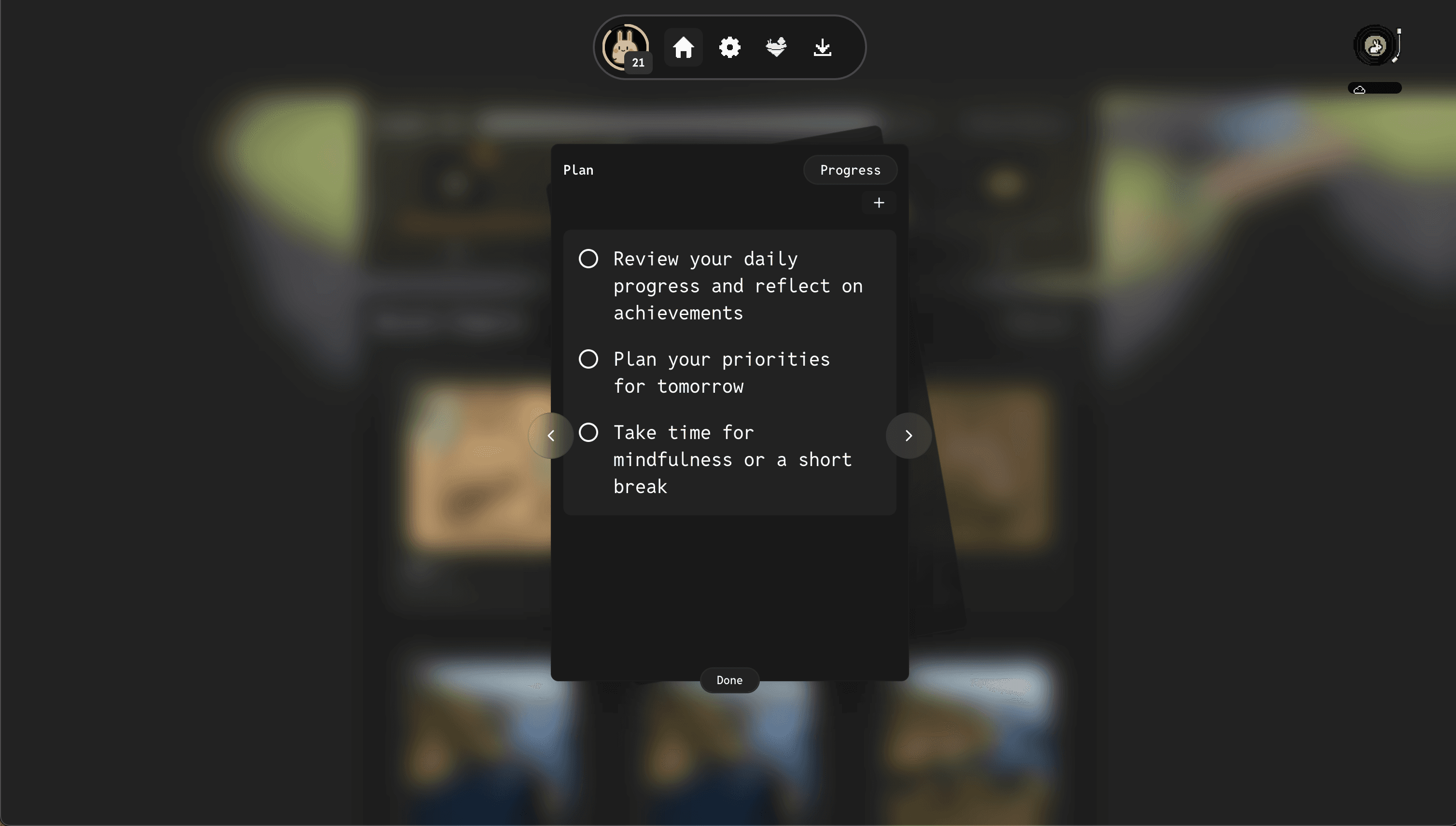 Pet mirrors you, the states make distraction feel noticeable and non-judgy.