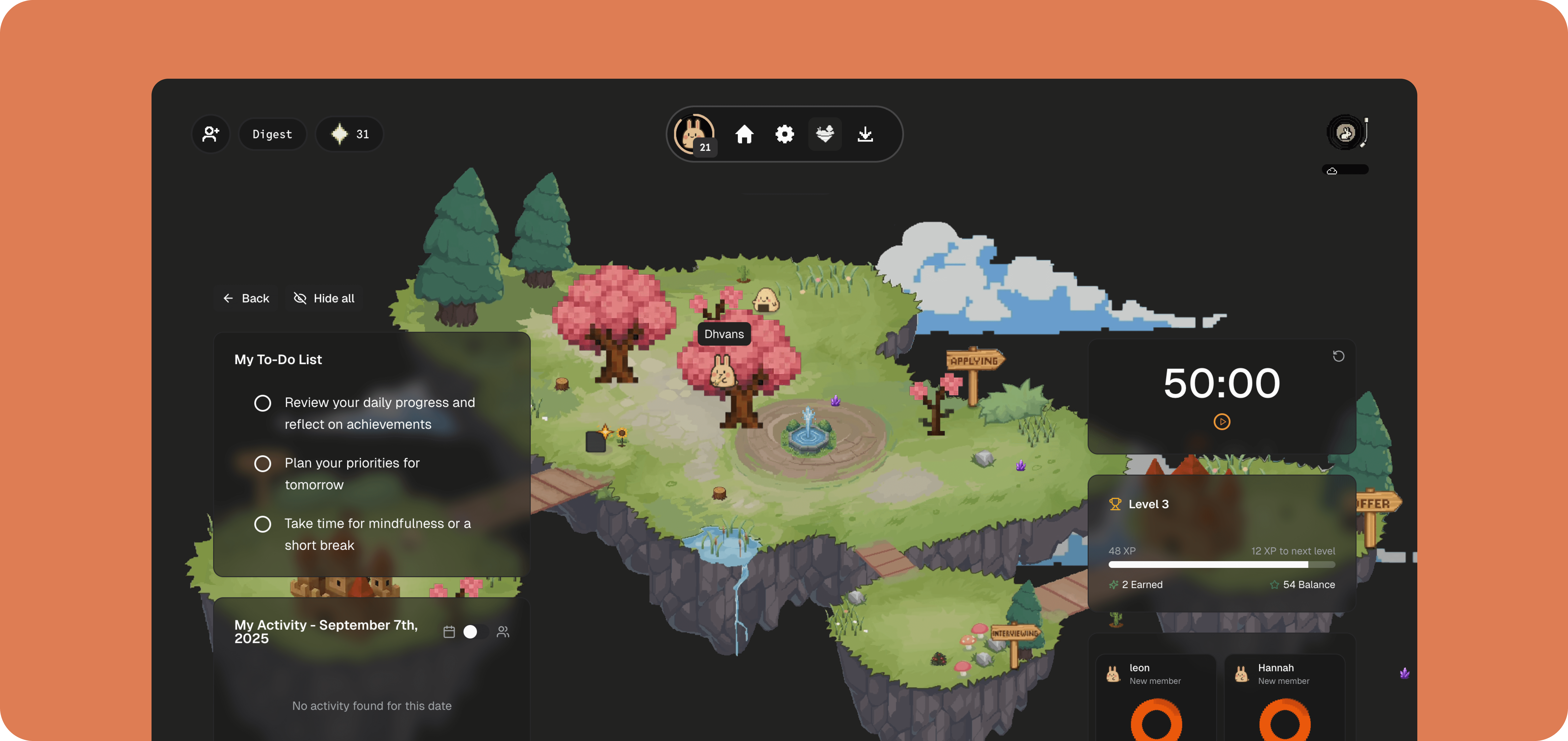 A multiplayer productivity app that pairs focus tracking with an ambient desktop pet to make accountability with friends feel social and sustainable.