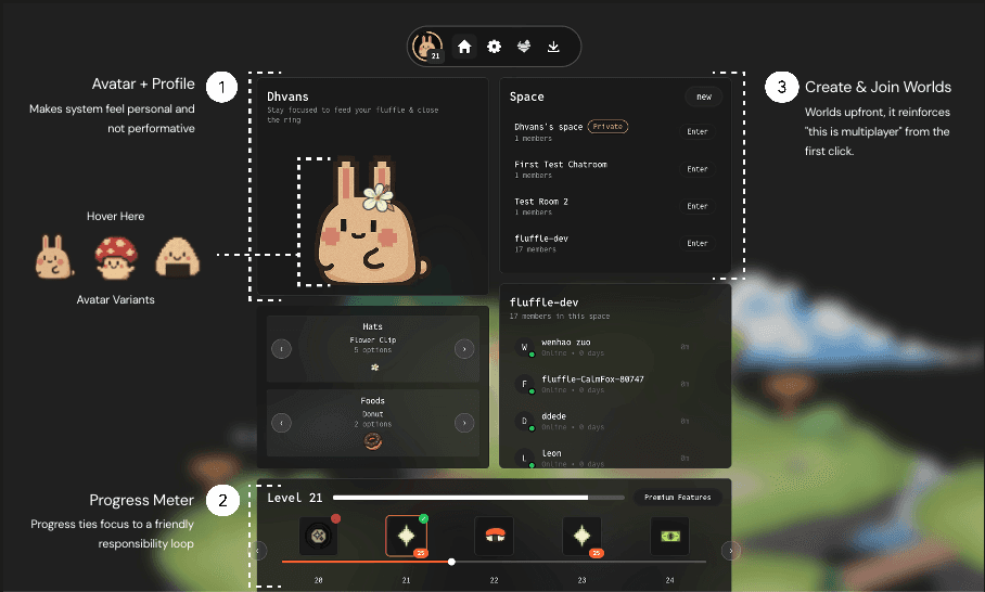 We designed and shipped Fluffle, a multiplayer productivity app centered on shared focus and gentle accountability.