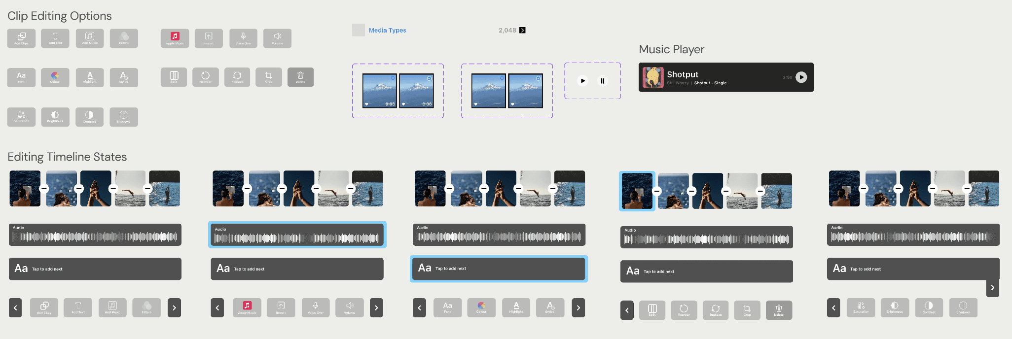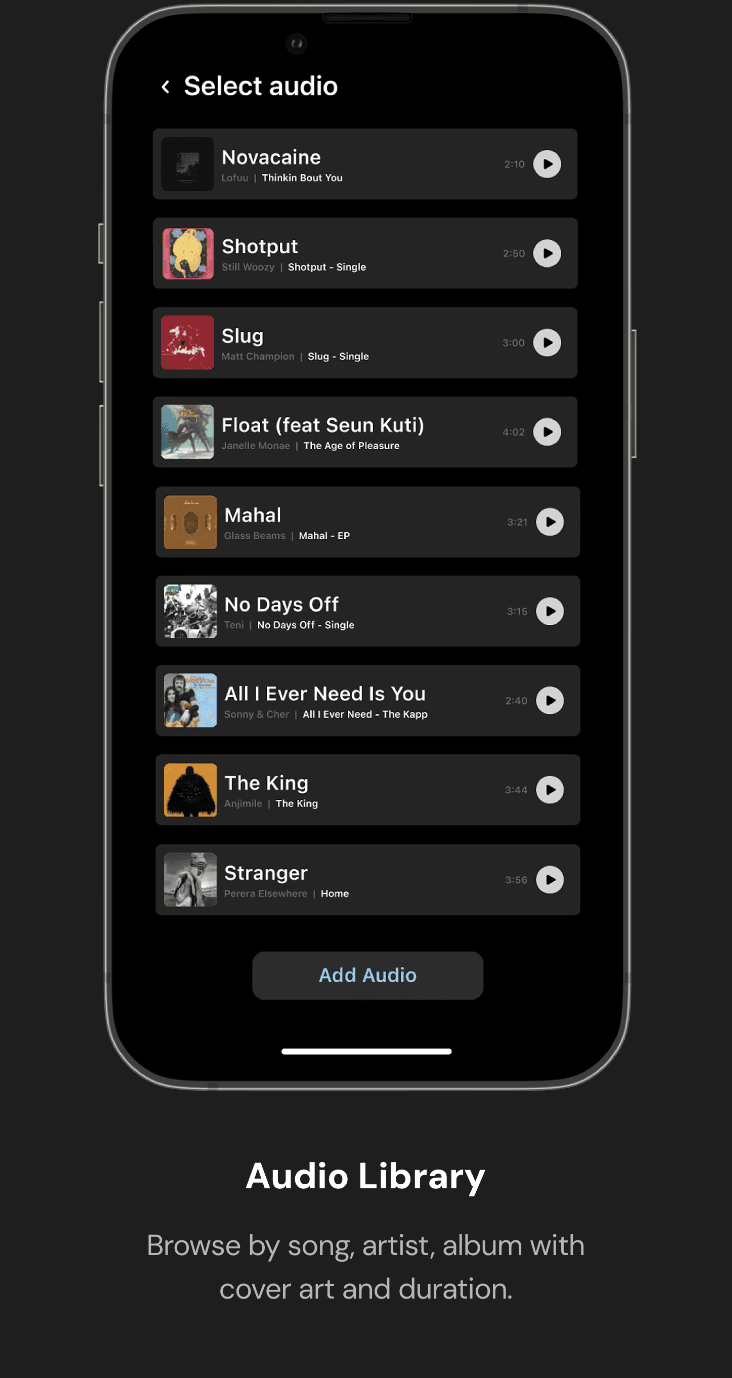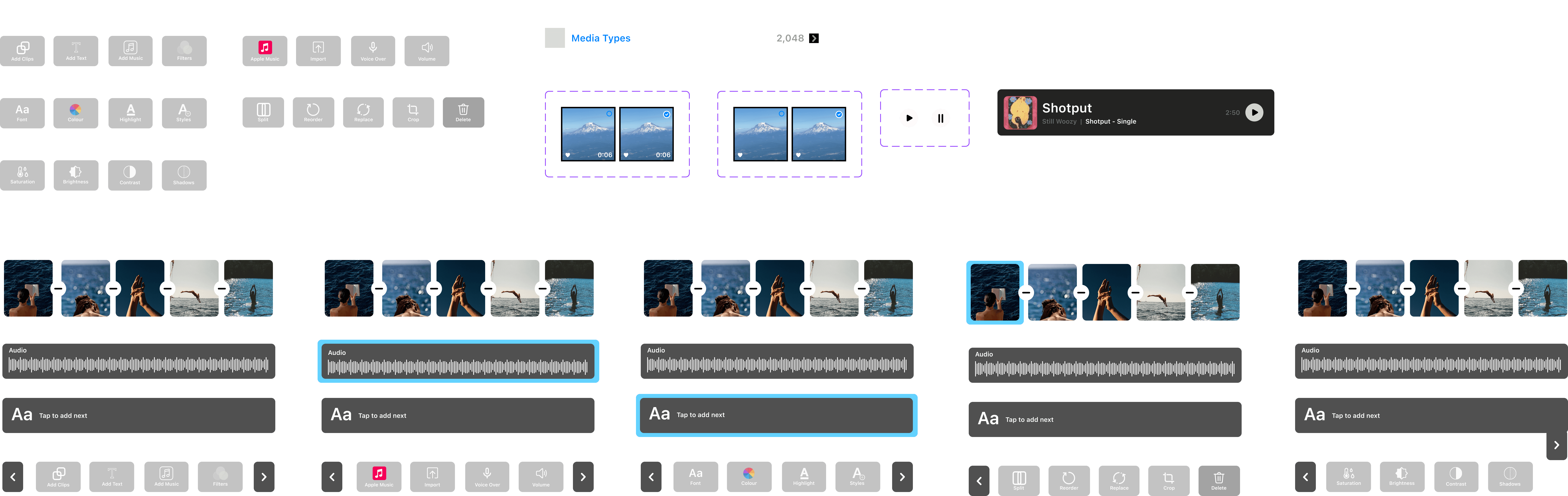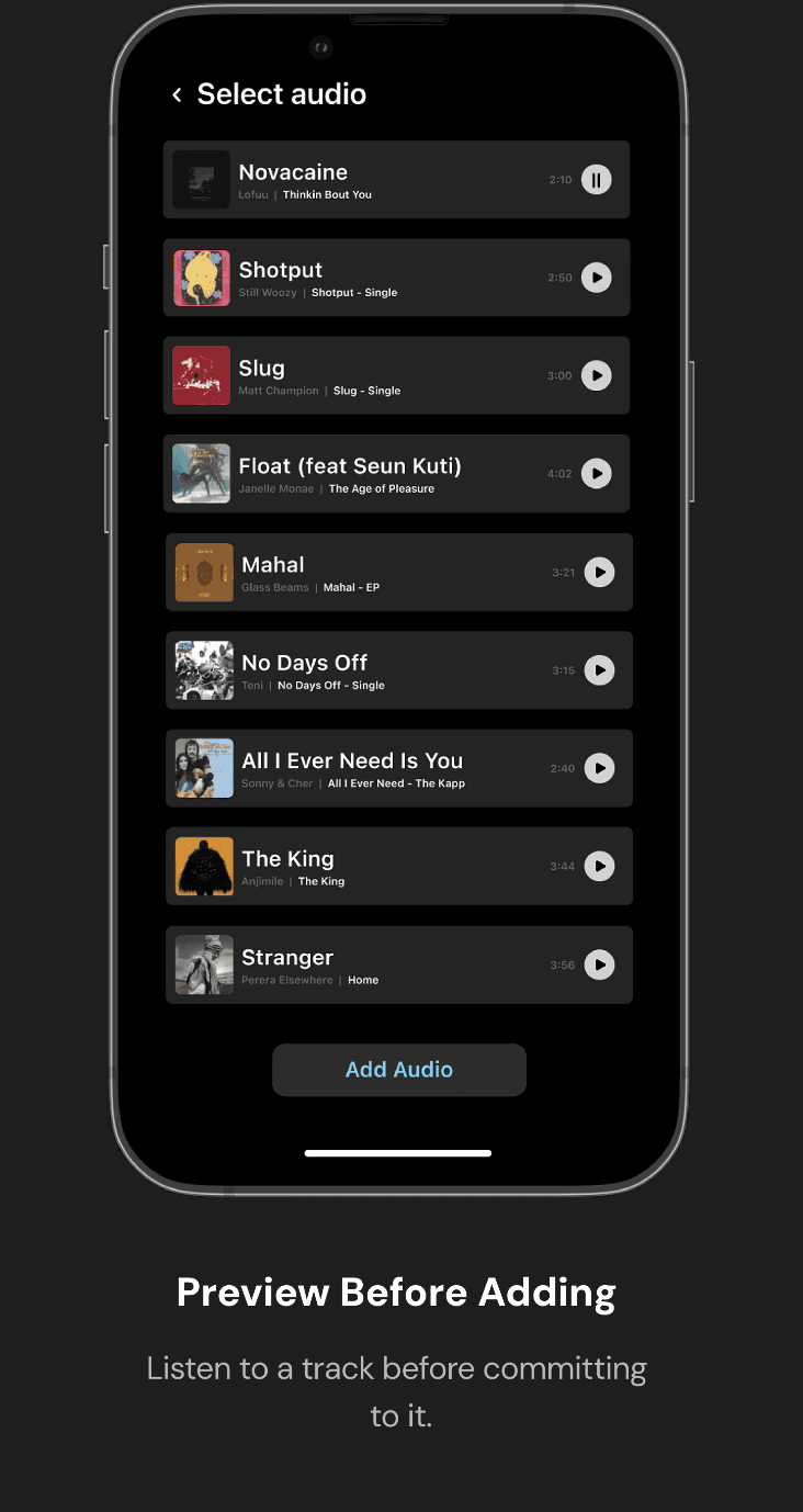 Redesigned 5 core editing flows using native Apple design patterns, clip management, audio library, video properties, preview, and cover selection, reducing friction without stripping creative control.