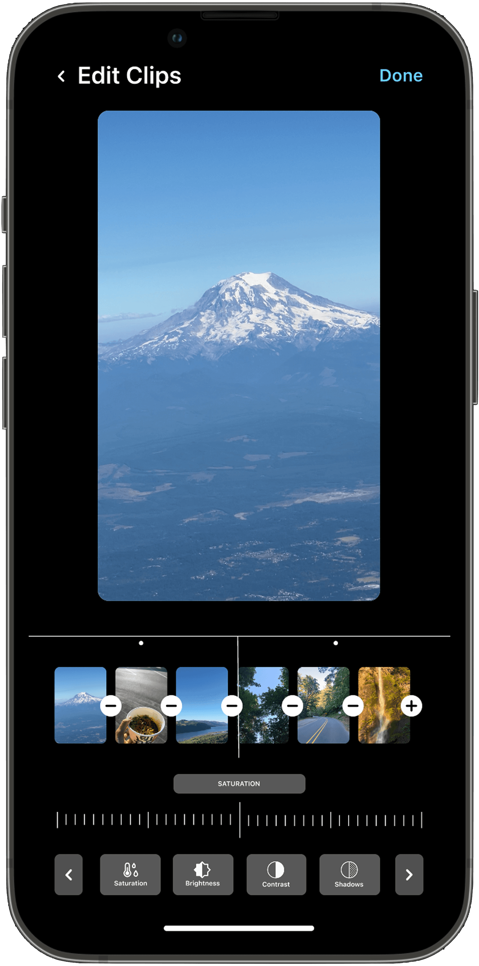 Adjust saturation, contrast, grain, etc,