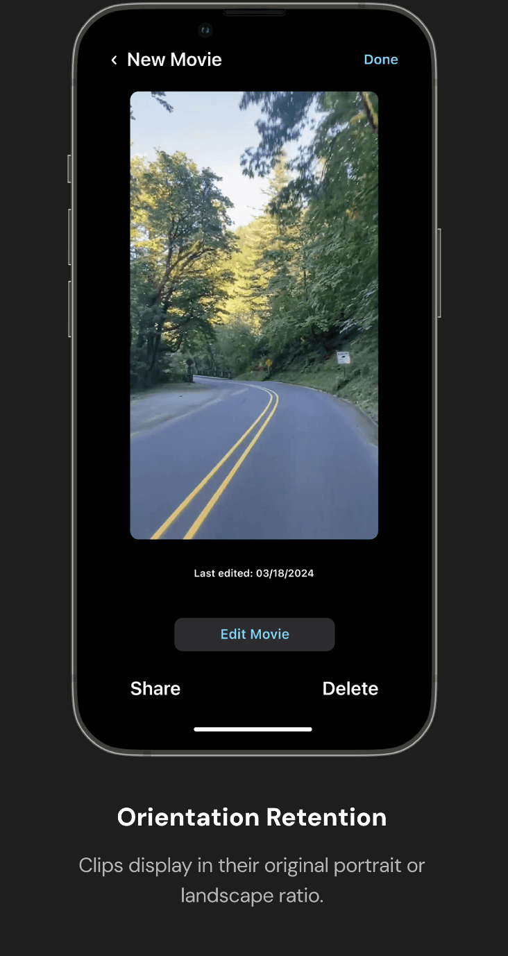 Clips display in their original portrait or landscape ratio.
