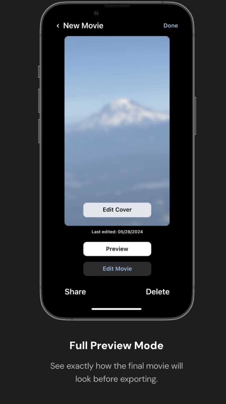 See exactly how the final movie will look before exporting.
