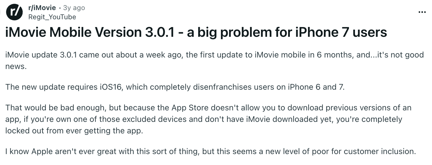 Reddit's r/iMovie community reviewed Mixed sentiment overall, great for first-timers, but frustration spikes the moment users try anything beyond basic edits.