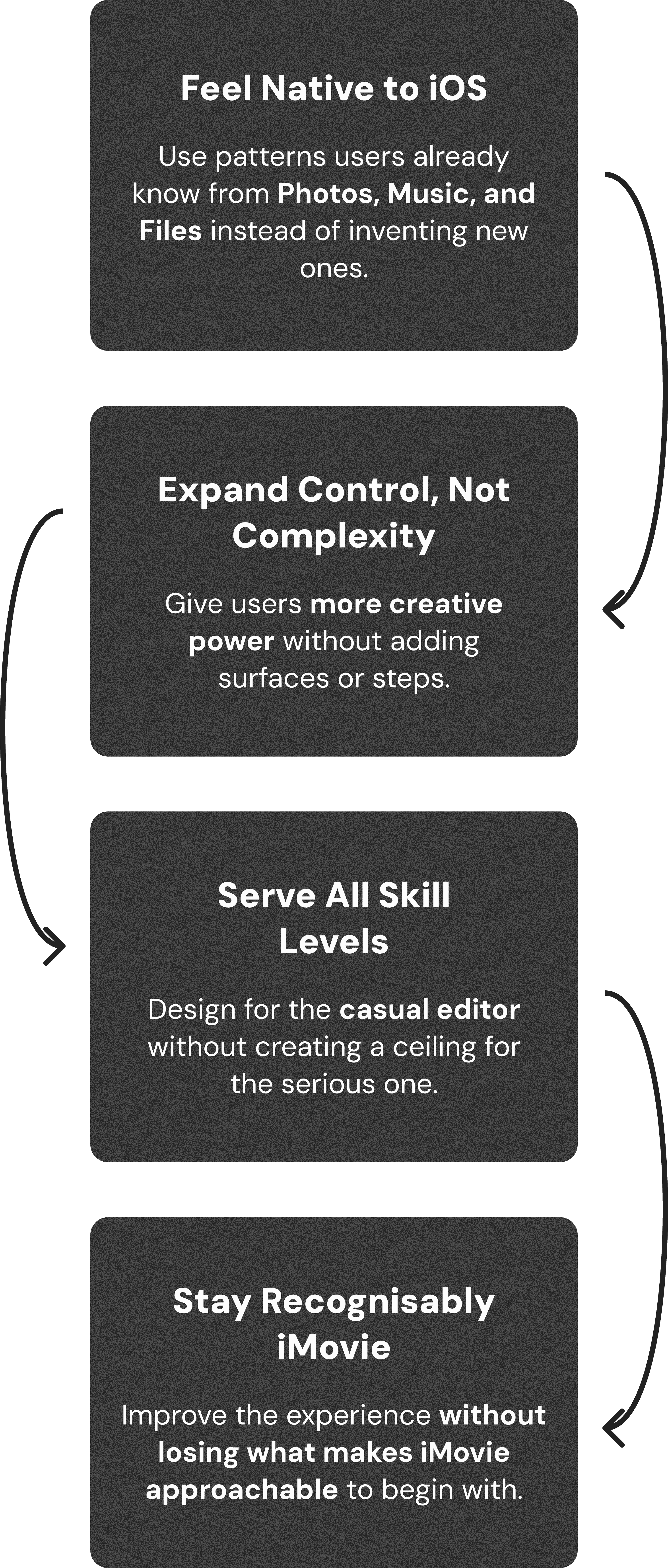 Research pointed to one clear direction: iMovie needed to feel like the rest of iOS, familiar patterns, native controls, and an experience that didn't ask users to relearn how to edit every time they opened the app.